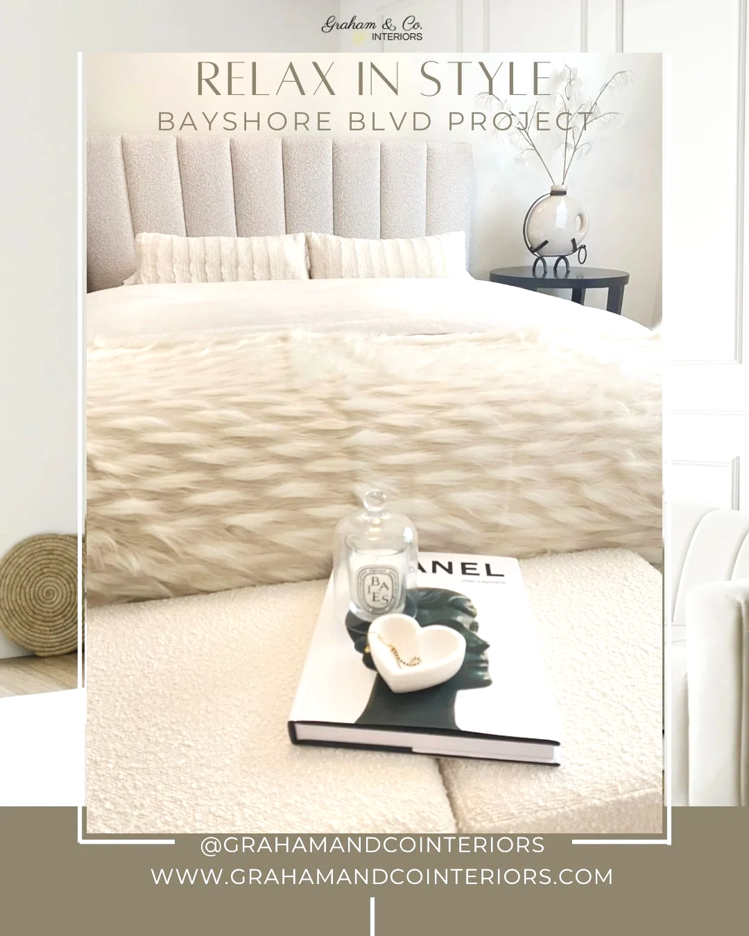 Design tip: Set an elegant display of glass diffusers and pillow sprays to create a blend of calming, luxurious, and fresh scents, such as white tea and lemongrass, to mimic the serene environment of a spa or luxury resort. I personally love Jo Malone and L’Occitane to bring relaxation with a sense of luxury to your space.